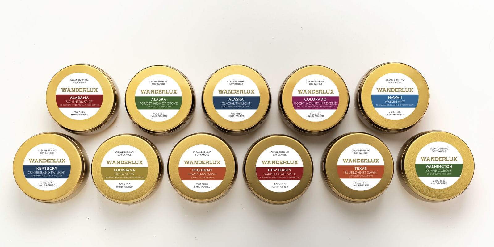Connect through scent to the states that captured your heart. Wanderlux soy candles are clean-burning and hand-crafted. Give the perfect gift to someone special anywhere across the U.S. reminding them of the places they love most.
